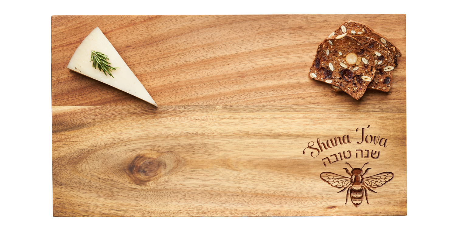 14 x 8" Acacia Modern Rectangle Board | Shana Tova with Honeybee