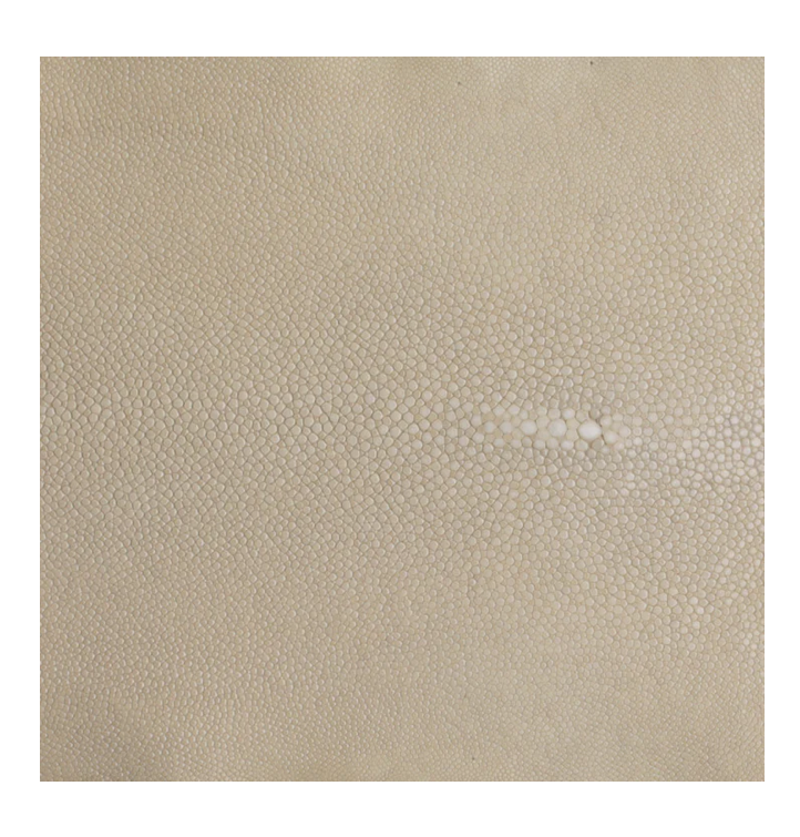 Hand-forged, 18/10, stainless steel square tray. Custom genuine shagreen covered handles. 16 x 16in