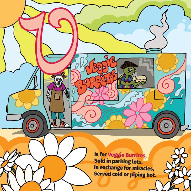 An alphabetical history of rock ’n’ roll’s most iconic band…the Grateful Dead. Featuring playful rhymes and glorious illustrations, The ABCs of the Grateful Dead celebrates the band’s rich and dynamic history. Each letter of the alphabet highlights a significant moment, cultural contribution, or innovation along the band’s journey, from their groundbreaking release of American Beauty to their pioneering Wall of Sound, from the beloved dancing bears to their singular community of tape traders. This delightfully kaleidoscopic look back on the Grateful Dead will entertain first-time readers as well as diehard fans of all ages. The Grateful Dead is a social and musical phenomenon that grew into a genuine American treasure. In 1965, an entire generation was linked together by common ideals, gathering by the hundreds and thousands. This movement created a seamless connection between the band and its fans. As the band toured, Dead Heads would follow.