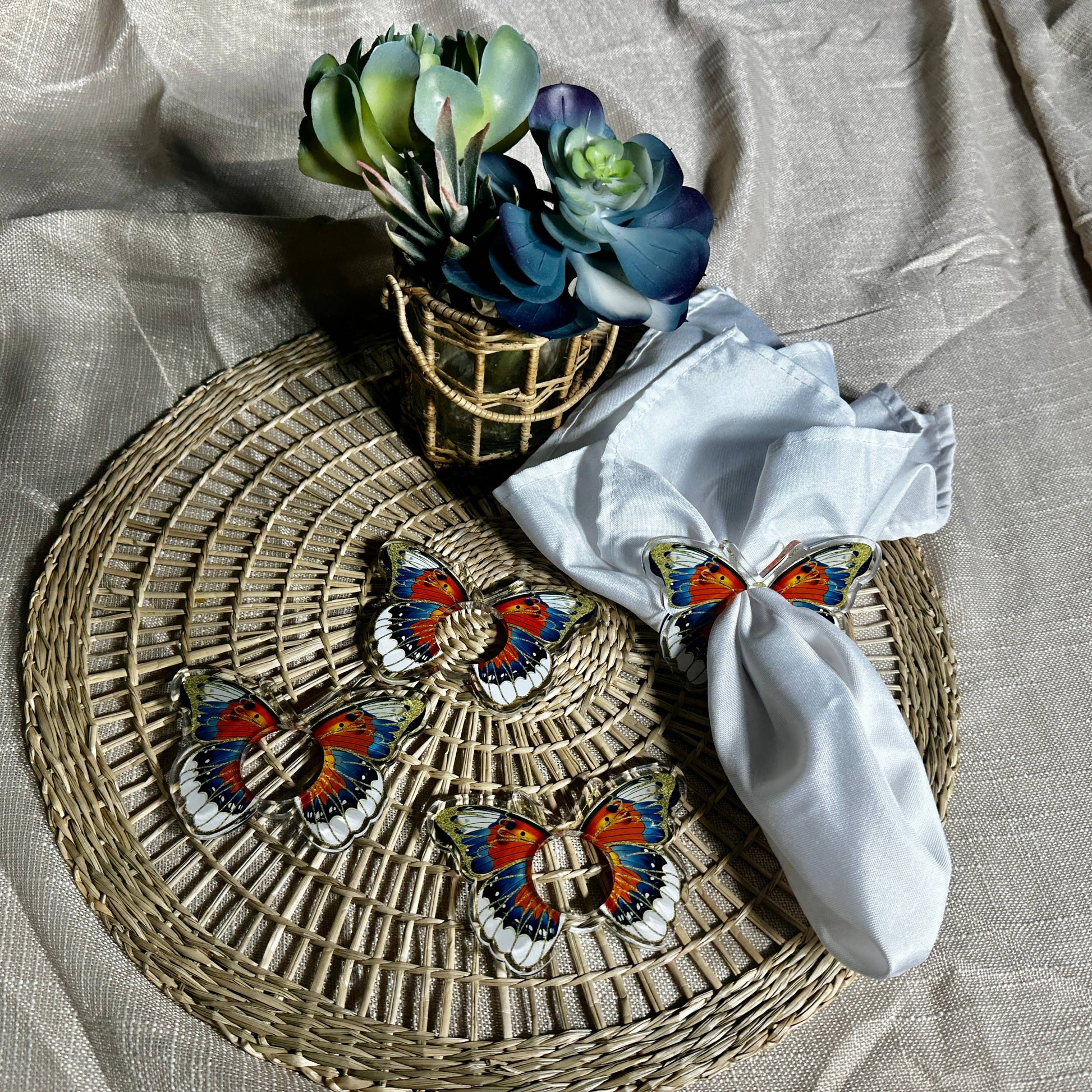Acrylic Napkin Ring - Orange Butterfly Set of 4