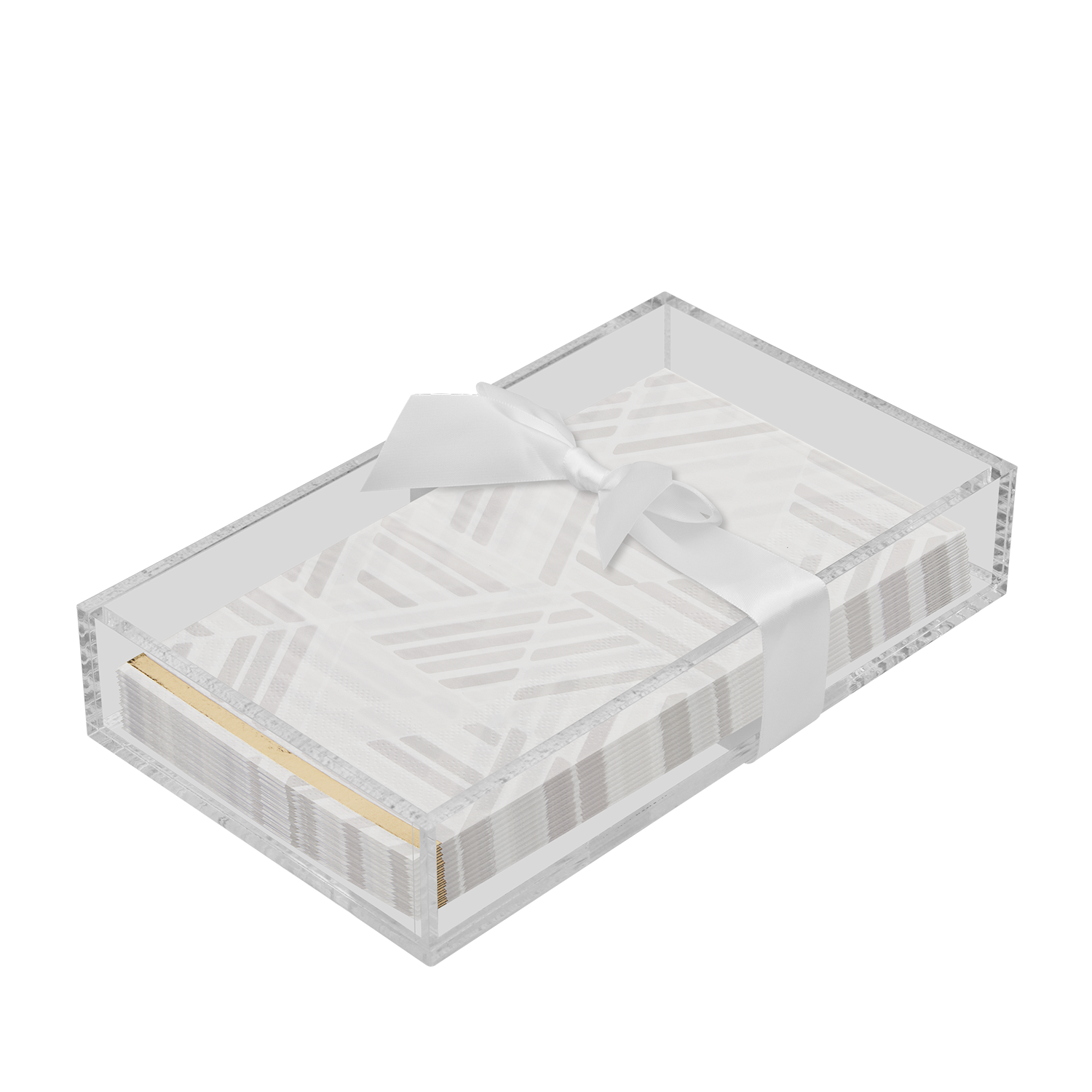 Acrylic Napkin Tray, clear with Guest Towel, clear - Gray Stripes