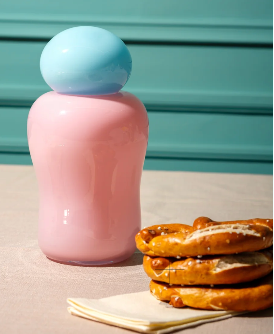 Belonging to Helle Mardahl's confectionery-inspired universe, the Bon Bon Medi is a sculptural addition to any home. Its removable lid and deliclious hues makes it suitable for tall flowers or as a purely aesthetic element in your living space.