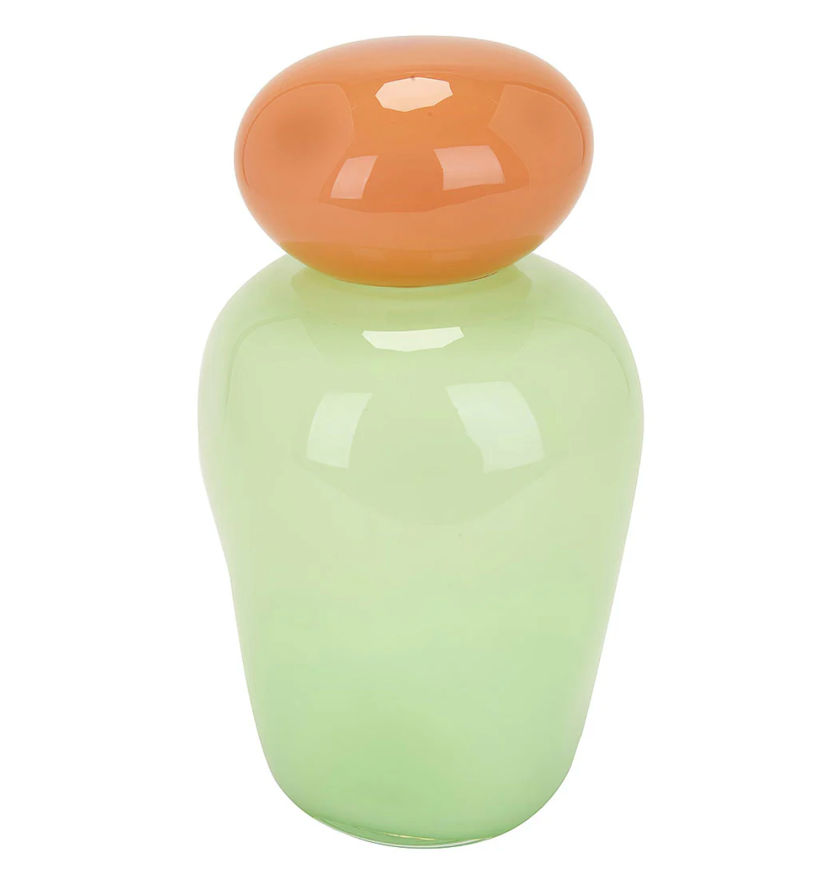 Belonging to Helle Mardahl's confectionery-inspired universe, the Bon Bon Medi is a sculptural addition to any home. Its removable lid and deliclious hues makes it suitable for tall flowers or as a purely aesthetic element in your living space.