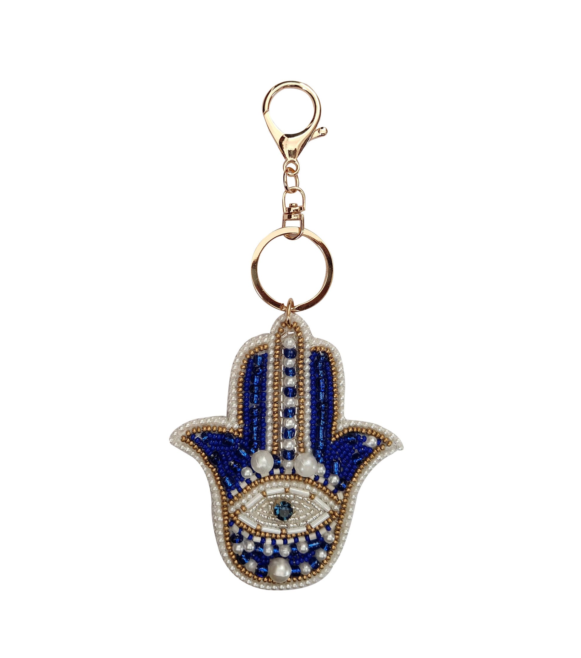 We present our Hamsa Bag CHARM. This beaded charm accessory, a perfect blend of elegance and practicality, is designed for the discerning woman. Each piece is meticulously crafted, showcasing our commitment to excellence and our unique story of hand craftsmanship. The exquisite beads, sourced with utmost care, make this not just an accessory, but a piece of art.