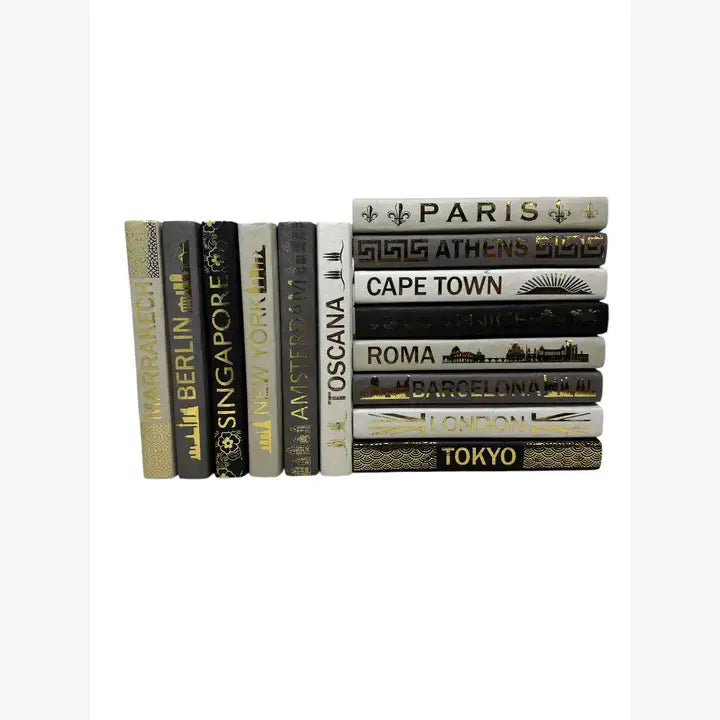 Gold Lettered Travel Destination & Design Covers on Taupe