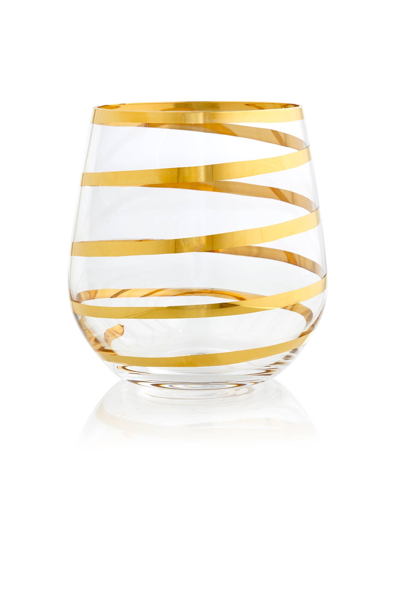 Gold Spiral Stemless Wine Glass Venetian Glass (each)