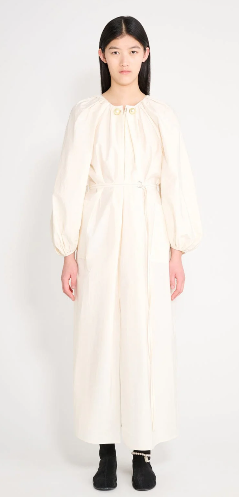Nackiye’s Grand Bazaar Dress with two pockets, front slit and belt. Sculpted simit collar and the classic double pearl pearl pin.