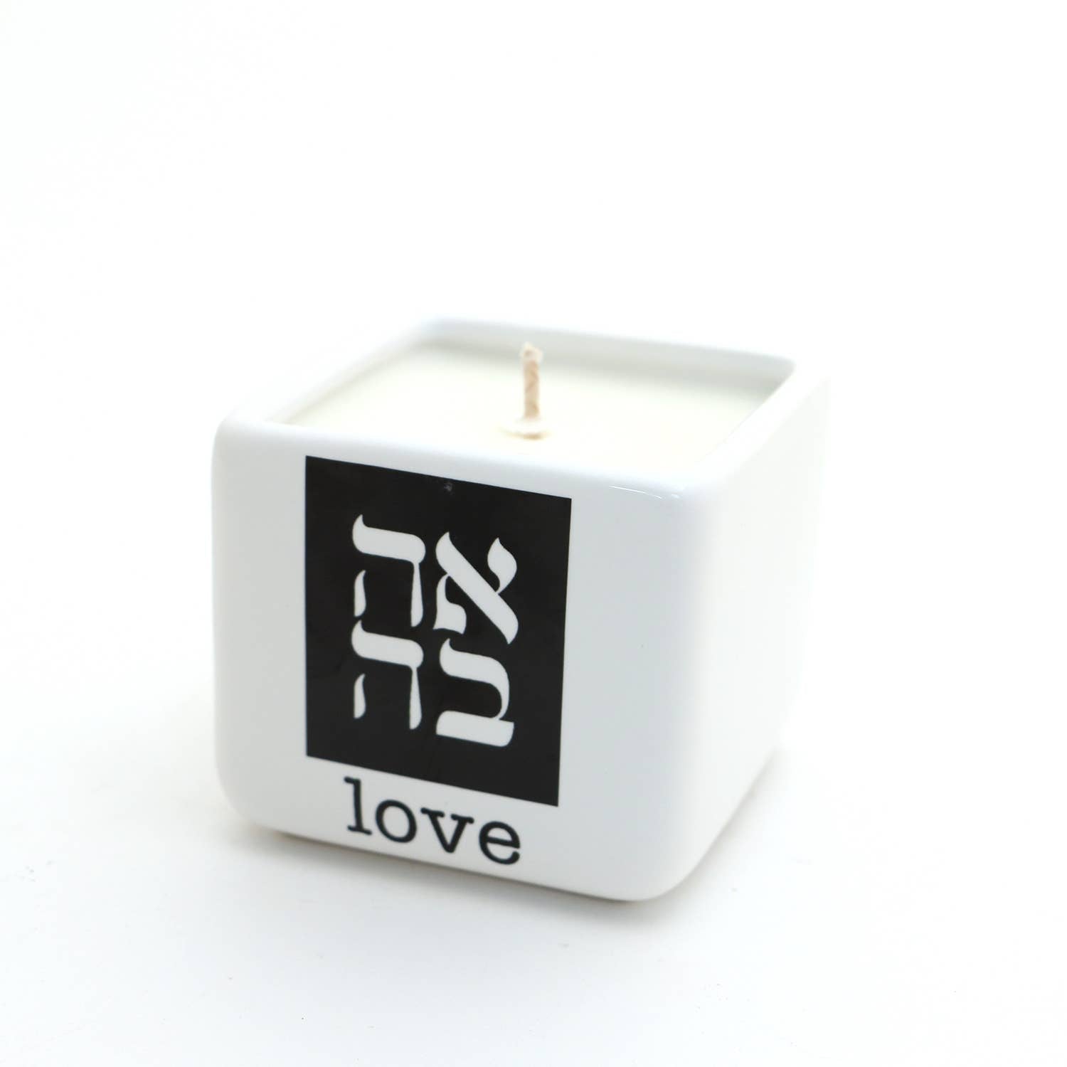Hand poured 8 oz. soy unscented candle, Ahava Love in Hebrew