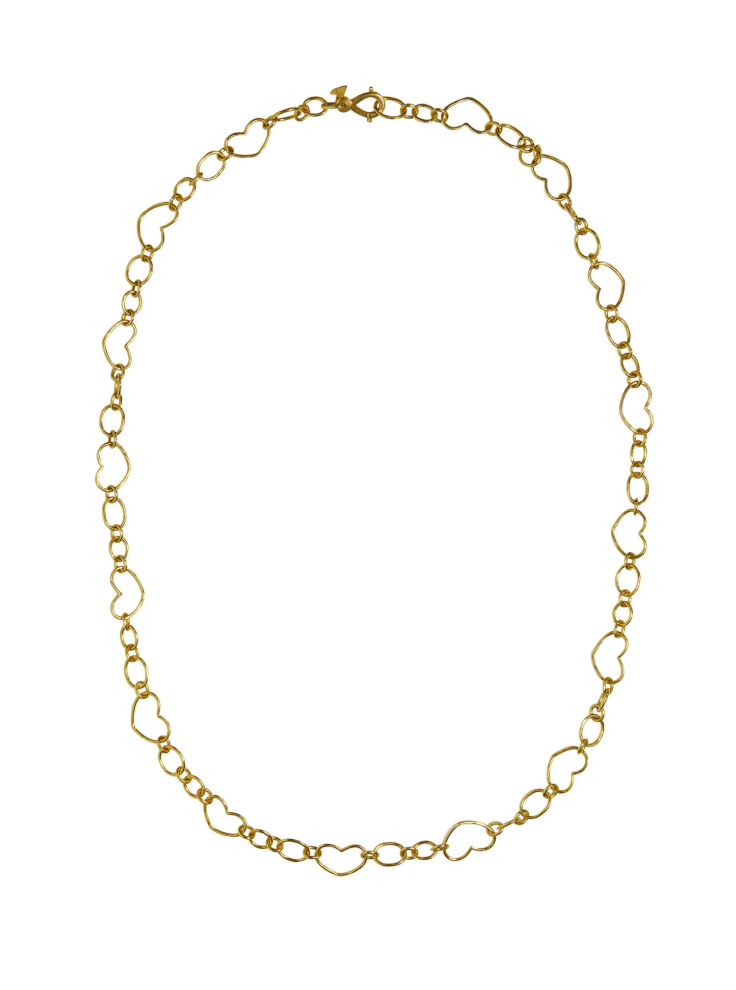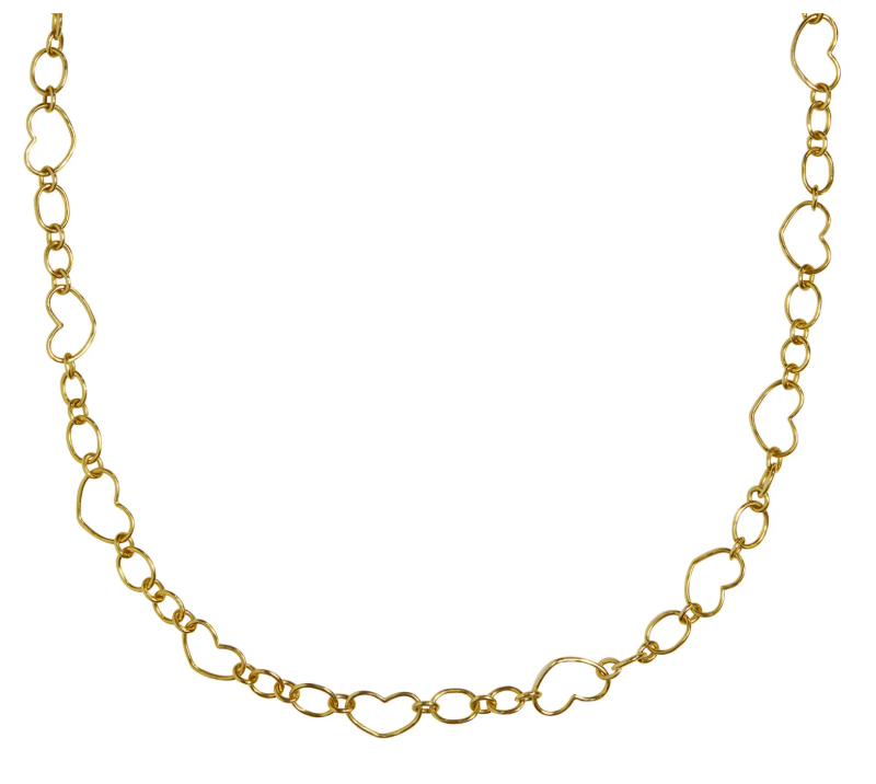 This Handmade Heart Link Chain Necklace is made with 18K yellow gold. Using traditional crafting techniques that have been preserved by Greek jewelers since ancient times, Christina’s pieces seamlessly blend virtuosic gold craftsmanship with special skills that combine beauty and character.