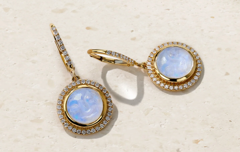 Happy Face Drop Earrings feature a pair of carved moonstone smiley faces secured in prongs and accented by an assortment of twinkling petite round diamonds tracing along the bottom portion of each moonstone. They are secured to the ear by lever backs that are studded with additional diamonds along the exterior portion for an additional shine. Suitable for any occasion, this modern and stylish design is the perfect gift for any loved one.