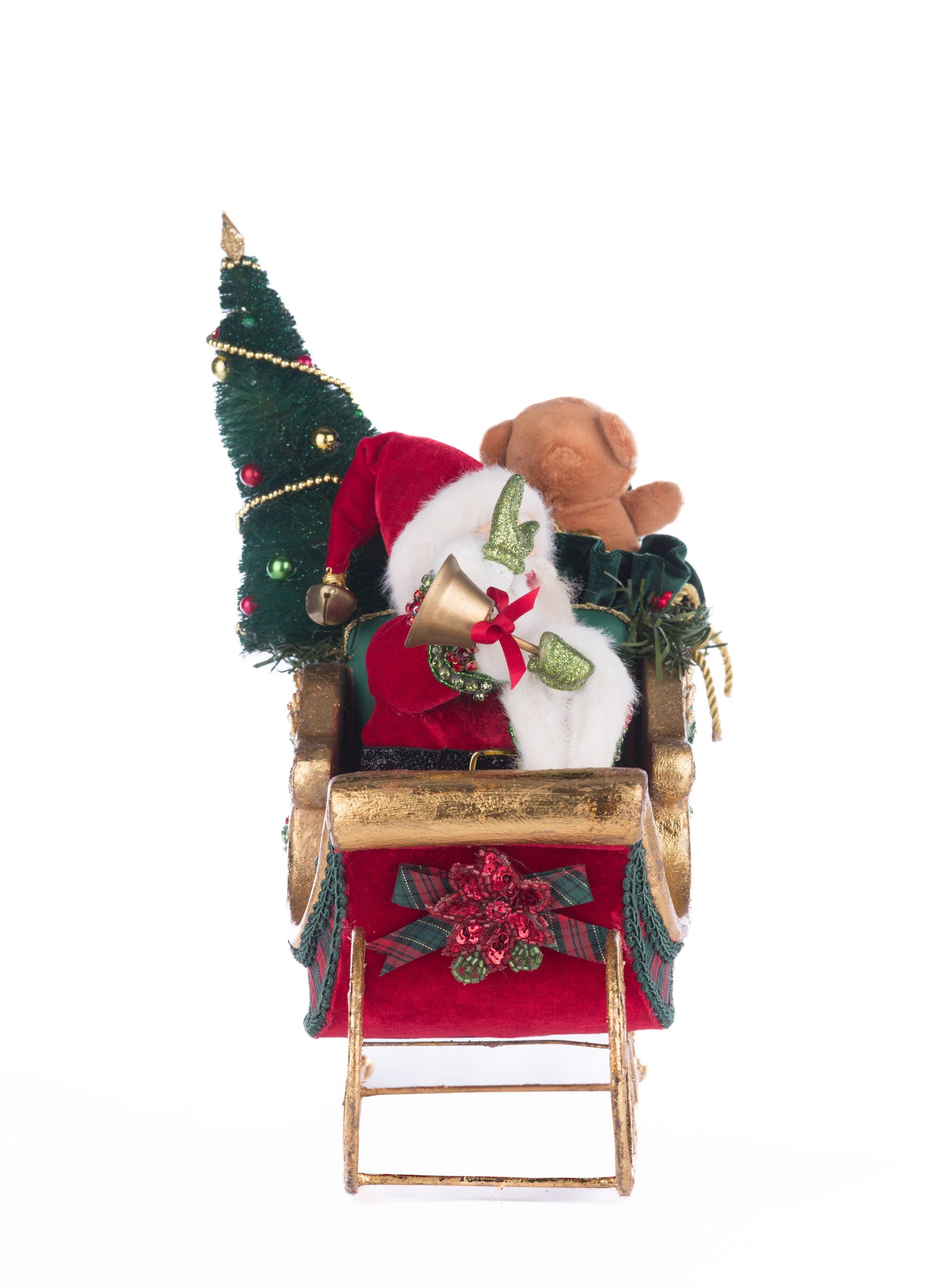 Velvet and plaid fabric covered resin and metal sleigh with wonderful trims and embellishments.