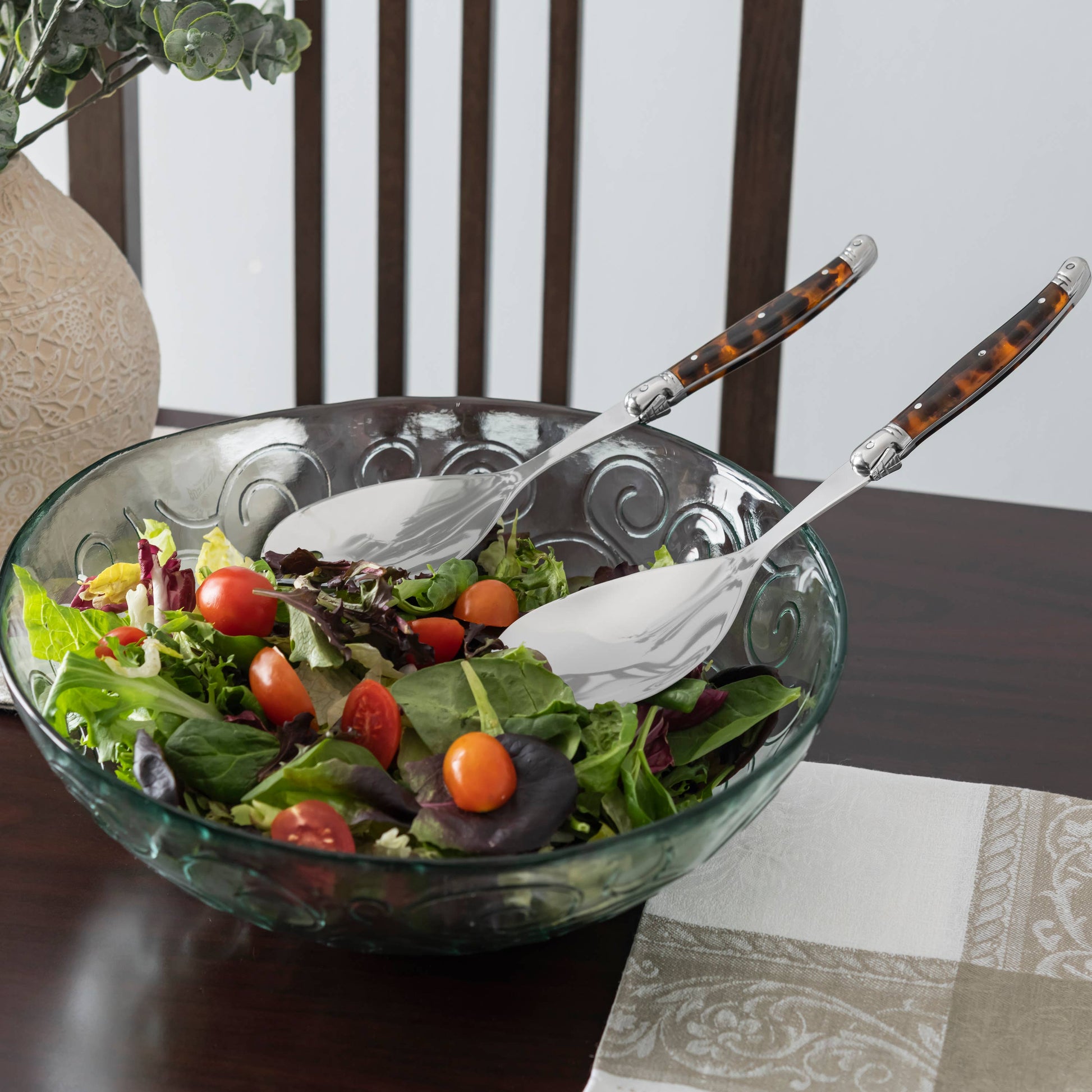 Serve fresh and delicious salads with these elegant salad servers with sophisticated and classic tortoise shell handles. These chic salad servers are comfortable to hold, look fabulous, and are ideal for everyday and special occasion use. This stunning set is dishwasher safe, making it as practical as it is beautiful. Featuring a traditional French design with a three-rivet curved handle and the iconic Napoleon Bee emblem on the bolster. Beautifully presented in a natural wood tray, this set is perfect for storage or gifting.