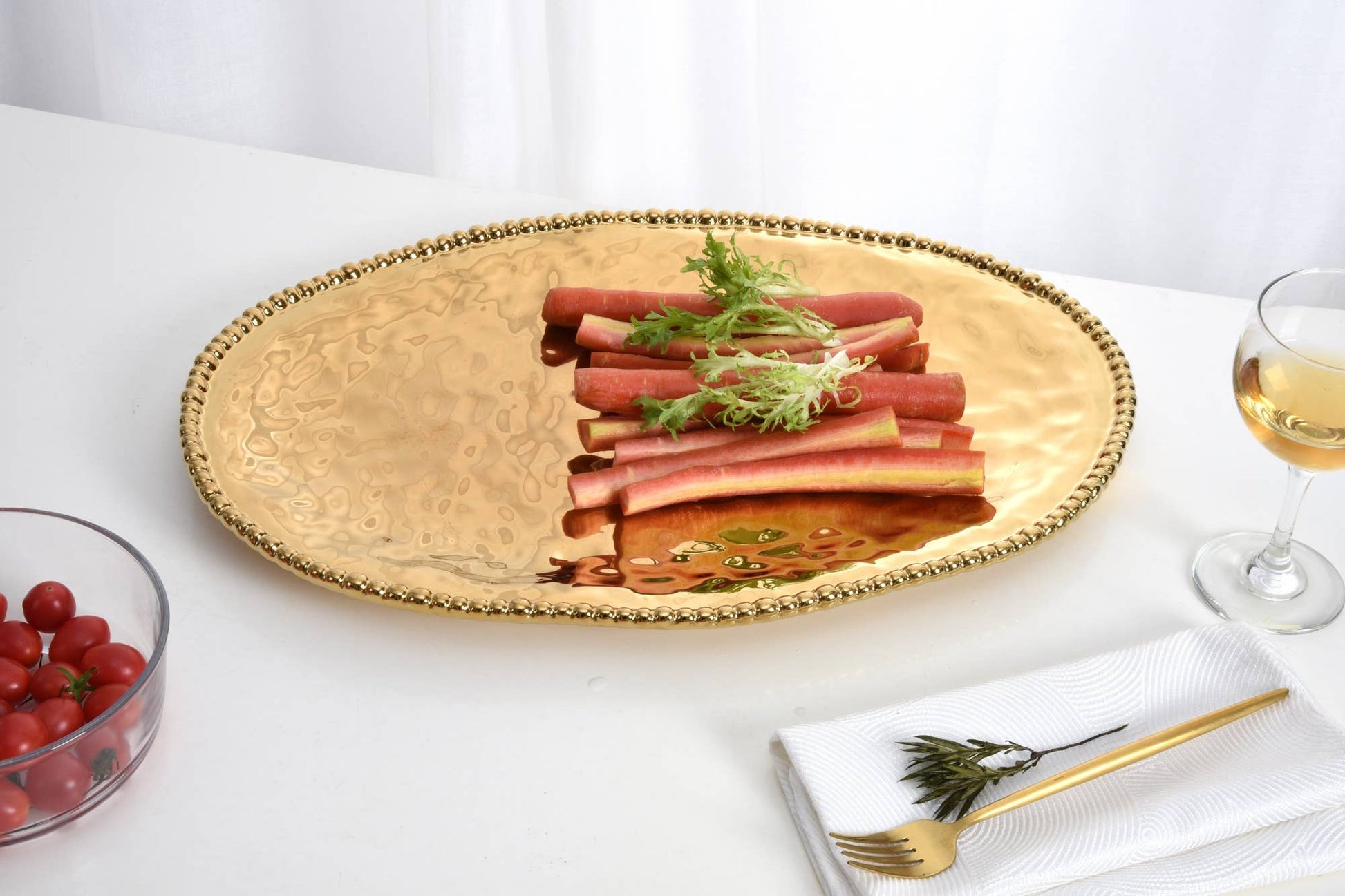 Large Oval Platter which is perfect for tempting guests with your delicious main course or hearty sides. Use for dessert to display an assortment of treats and sweets! Generously sized at over 18” in length.