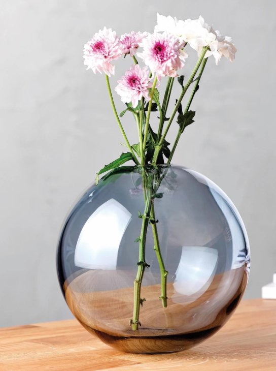 Large vase steel blue draws inspiration from the captivating beauty of distant planets, adding a unique aesthetic to your home. This enchanting vase, made from handmade, lead-free crystal, pays homage to the planet Mars and its two moons. The fourth planet's long-standing capture of human imagination, with its landscape in shades of orange and steel blue, serves as the inspiration for this design. The orange tone, inspired by Mars's iron-rich soil, and the steel blue seen in the planet's sky, contribute to Mars's extraterrestrial beauty and remind us of the diversity of colors and landscapes beyond our own planet.
