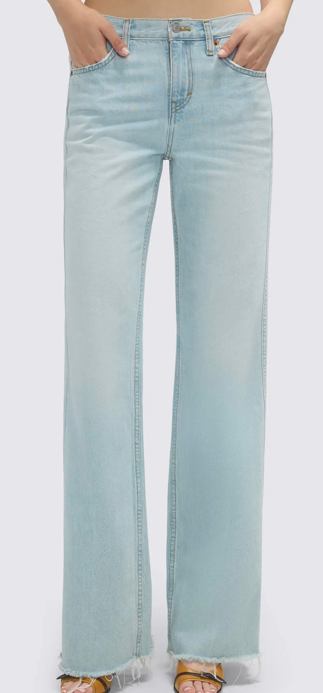 The Californian is an interpretation of an easy everyday jean, mid-rise and full length with a flattering side panel. Features our bestselling flow rigid denim, classic zipper fly and a fray hem.