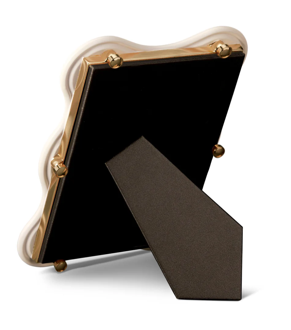 The Ripple Frame off-white enamel is a modernist nod to the 1970s with a wavy frame edge. Assembled in our Portuguese Atelier, the frame comes complete with L’OBJET’s signature leather backing. This stylish frame is perfect for a gift or to add personality to any space in your home.