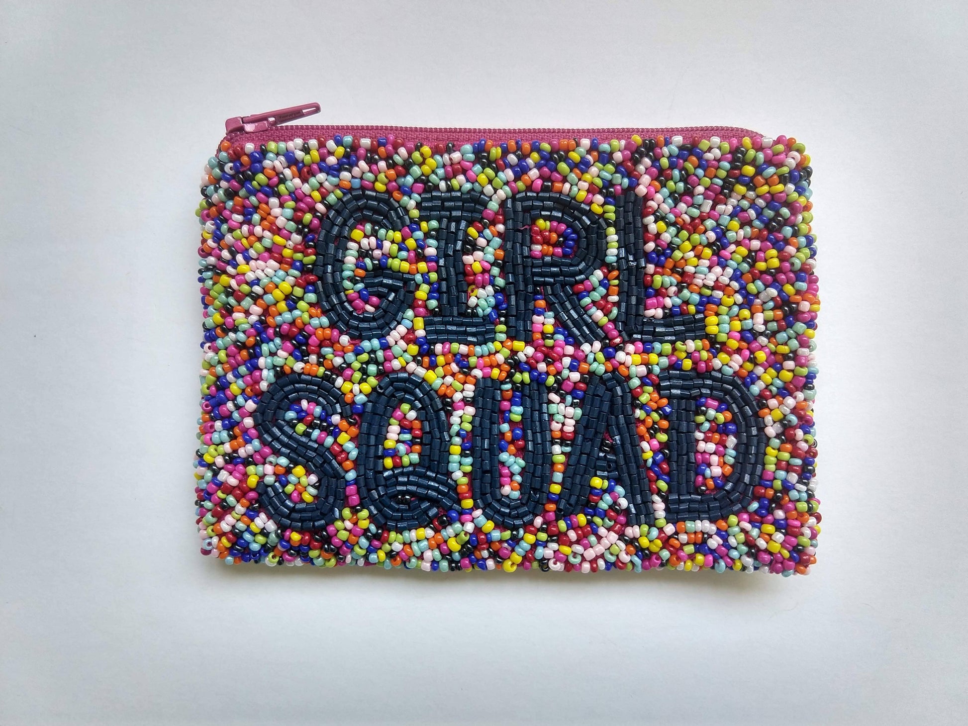 The SCP Girl Squad coin purse is an elegant accessory for the modern woman. This purse showcases a commitment to quality and tradition, with every bead carefully sourced, cut, and colored to perfection. Handmade by master craftsmen, this fully beaded coin purse is not just a product, but a piece of art with a unique story to tell. Whether it's for storing coins or small essentials, this purse is a testament to detail and enduring elegance.