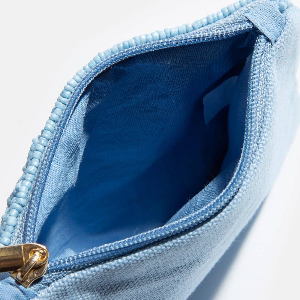 This coin purse adds a modern seed beaded hamsa hand eye style. Experience the joy of accessorizing with this piece that effortlessly combines versatility and charm.