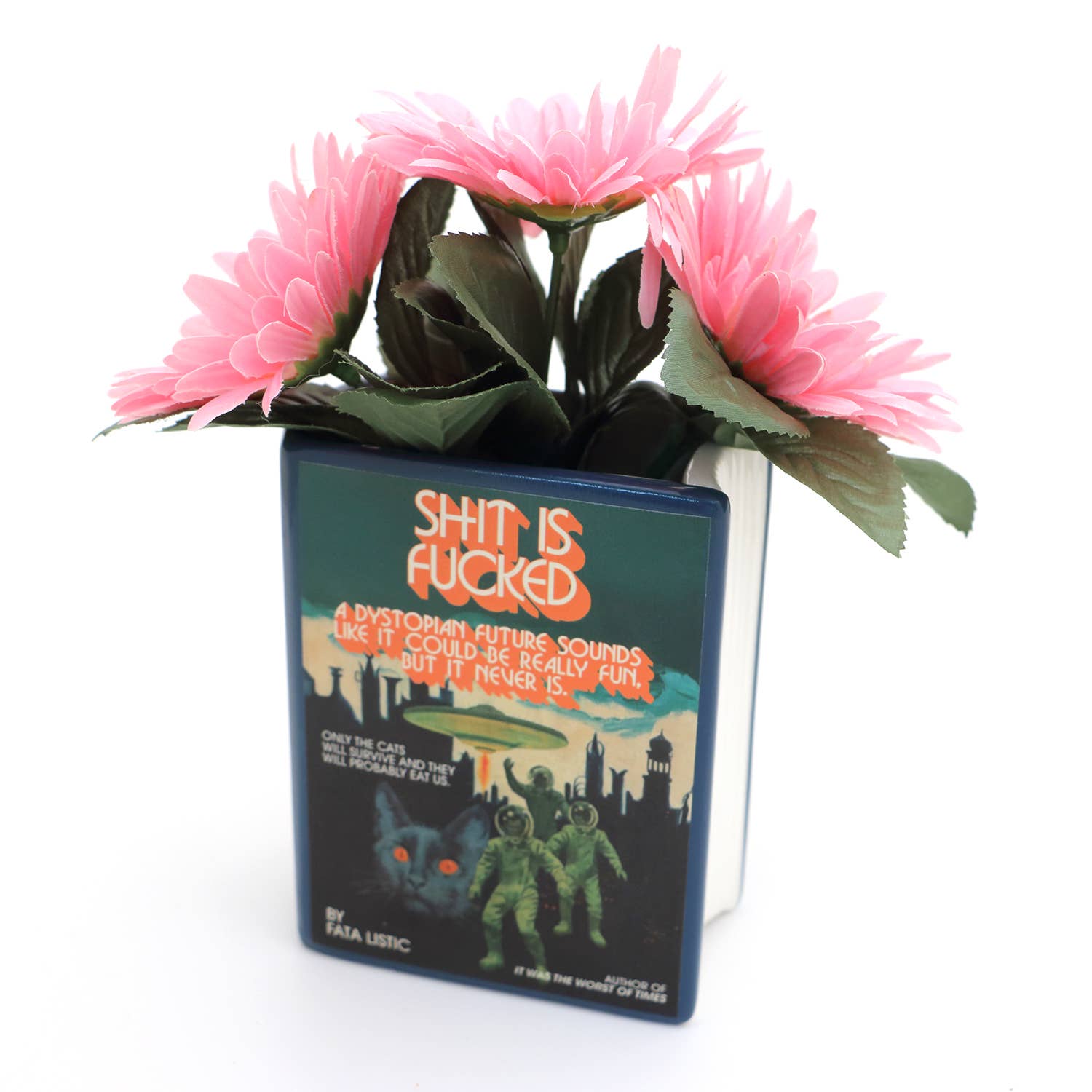 Shit is Fucked Book vase, Book pencil holder, decoupaged, vase